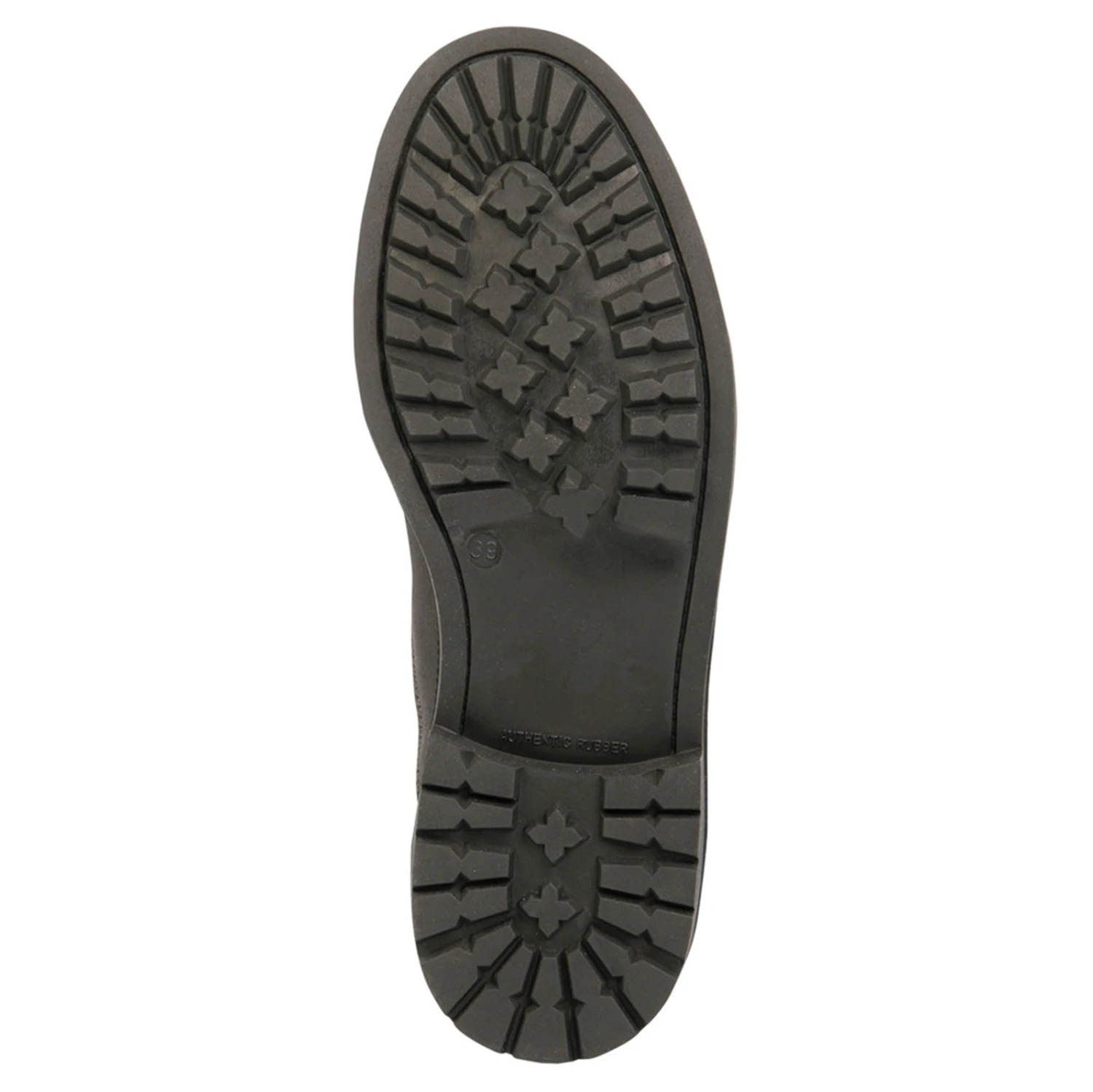 Edler Winterreitstiefel mit Saum aus Schafsfell, der hübsch nach außen geklappt werden kann. Der Schuh selbst ist aus gewachstem Nubukleder und einem Futter aus 100 % Wolle gefertigt. Damit sich der Stiefel leicht anziehen lässt, ist er an der einen Seite mit einem YKK-Reißverschluss und an der anderen Seite mit einem.