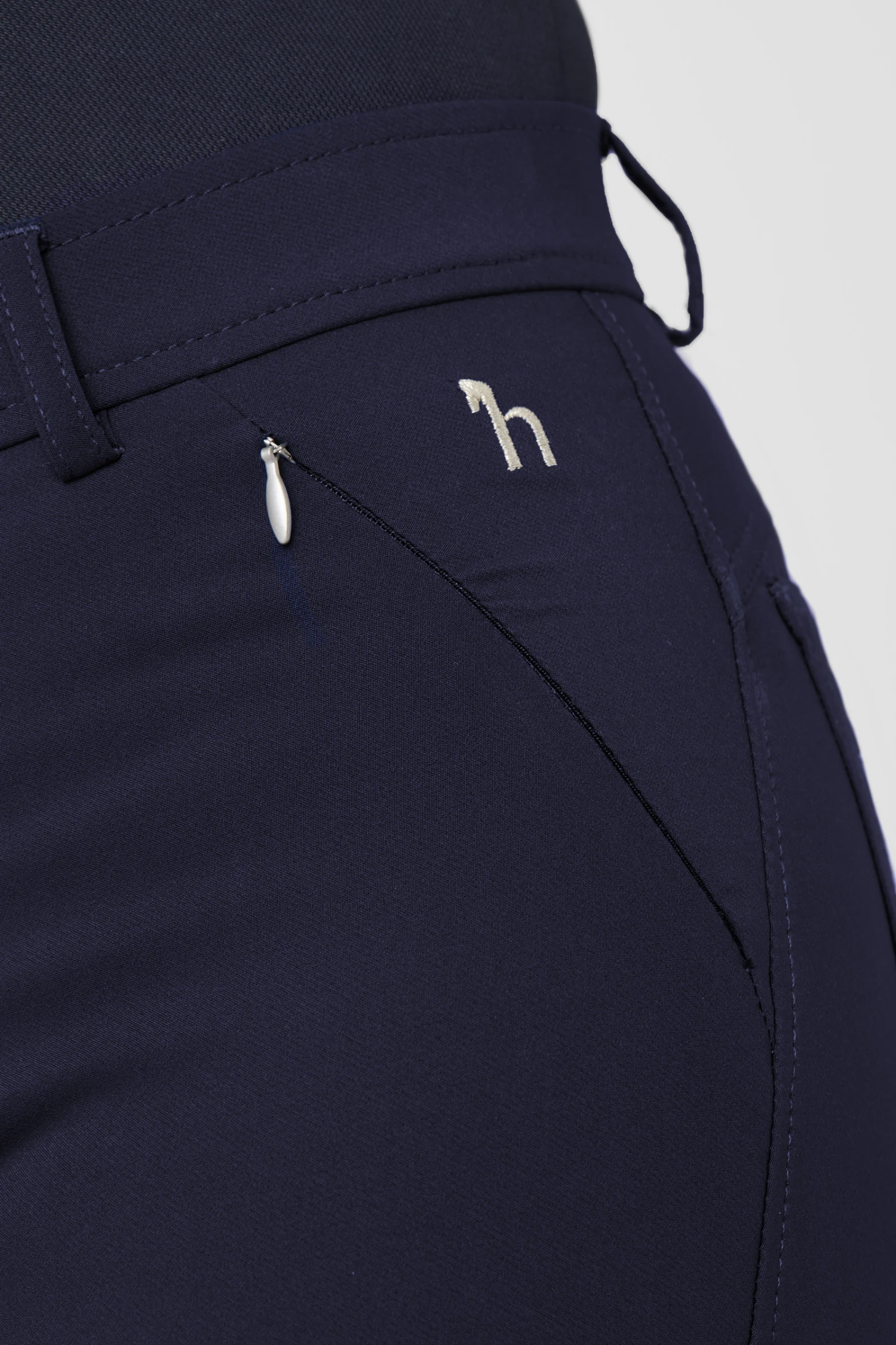 Die Horze Kaitlin Reithose ist aus weichem, dehnbarem Material gefertigt. Vordertaschen mit Reißverschlüssen bieten Platz für dein Handy. Die Gesäßtaschen sind mit silbernen Blättern bestickt, passend zum floralen Silikonkniebesatz. Gedeckte Farben passen perfekt zu deiner Reitgarderobe.