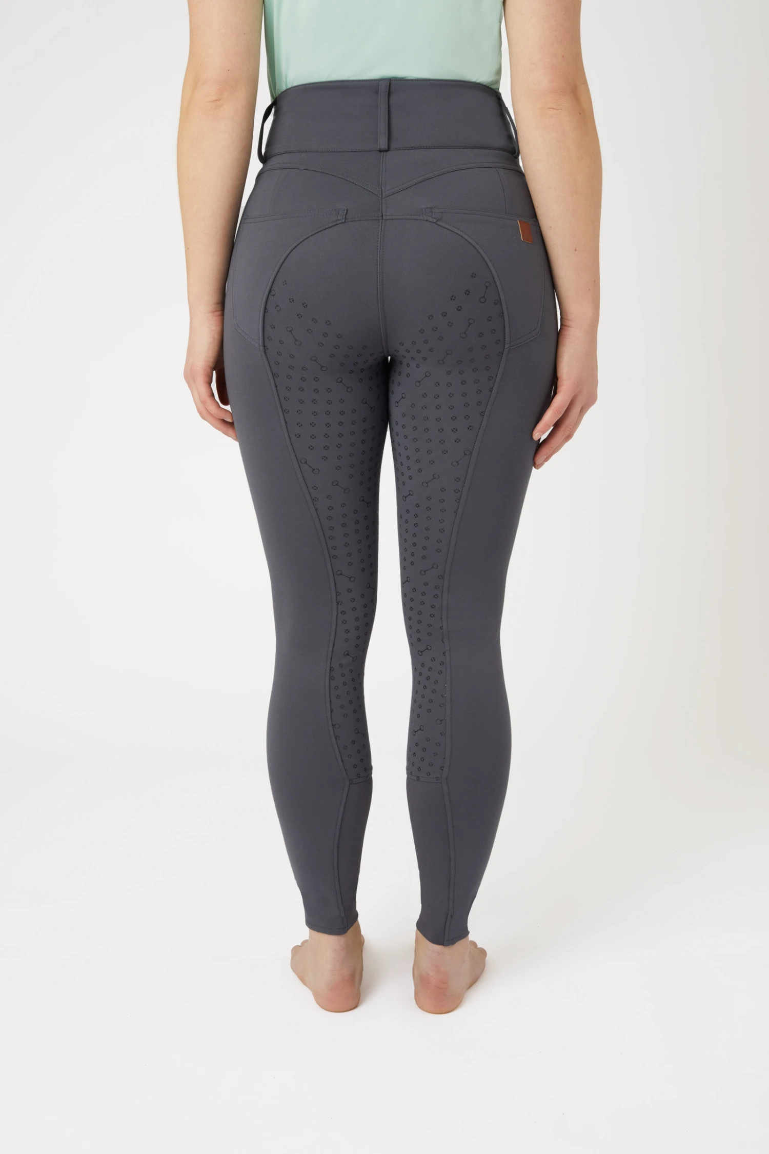 Die Hose ist hinten etwas höher geschnitten, um auch im Sattel optimalen Tragekomfort zu bieten, während die Rückennähte eine schöne weibliche Silhouette zaubern. Außerdem sorgt der ausgelassene Silikongrip am Gesäß für mehr Flexibilität im Sattel, während der Vollbesatz immer noch mehr Halt bietet als reine Kniegrip Reithosen. Der breite Bund dieser High Waist Reithose ist super bequem zu tragen und kann dank der Gürtelschlaufen noch mit einem Gürtel deiner Wahl kombiniert werden. Der Frontverschluss mit drei Gutos-Knöpfen ist mit kleinen ‚h‘-Logos verziert. Mehrere Vorder- und Gesäßtaschen zum Verstauen von Kleinigkeiten oder deinem Handy. Das dehnbare, atmungsaktive Material macht diese Reithose zu einer perfekten Wahl für jede Jahreszeit.