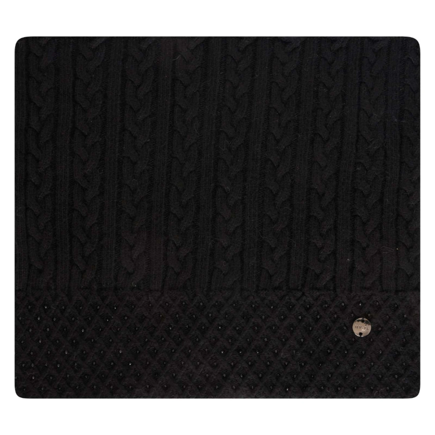 Gestrickter Schlaufenschal mit Zopfmuster und Strasssteinen.