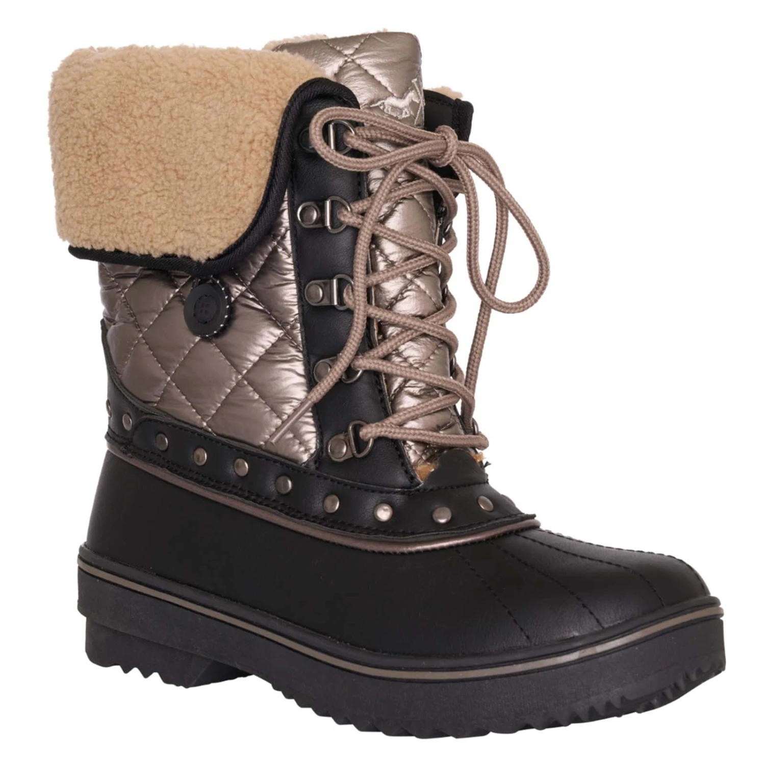 Warme Winterstiefel mit Kunstfell innen, reflektierenden Prints oben, hinten und an der Zunge. Mit ausgefallenen Nieten.