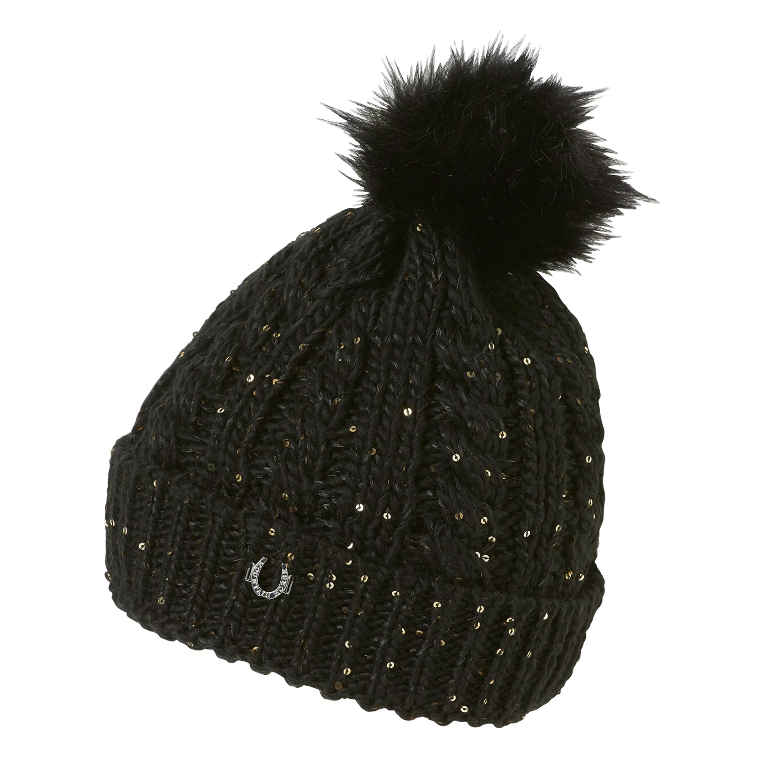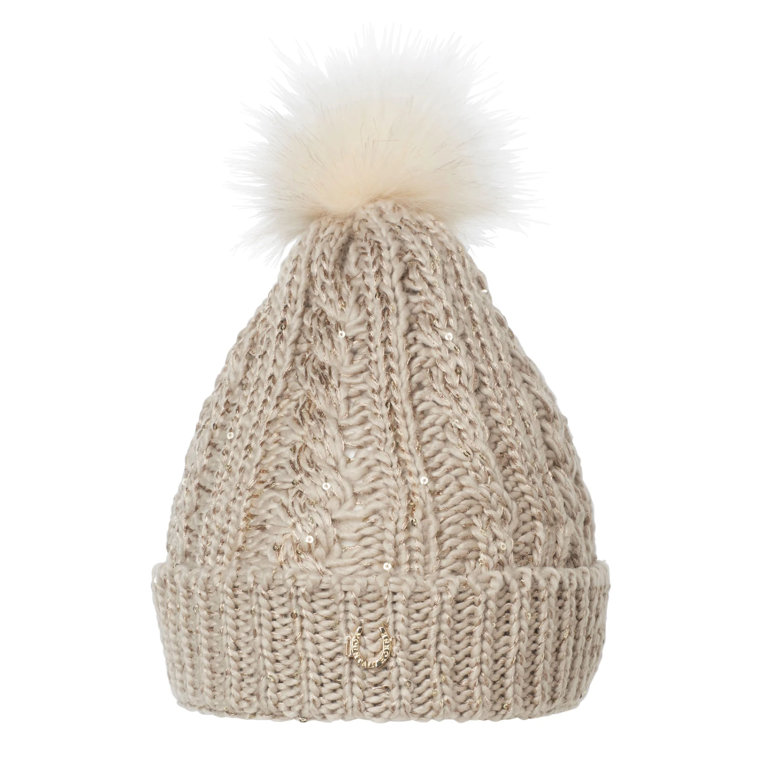 Modische Strickmütze aus Paillettengarn mit kleinem MH Logo vorne und halber Fleece Fütterung rund um den Kopf für mehr Komfort. Halb mit Fleece am Kopf gefüttert für ein weiches und angenehmes Tragegefühl. Weiche und kuschelige Qualität. Maschinenwäsche. Großes, gestricktes Logo vorne für einen großartigen Look. Modische, gestrickte Mütze. Hufeisen Logo.