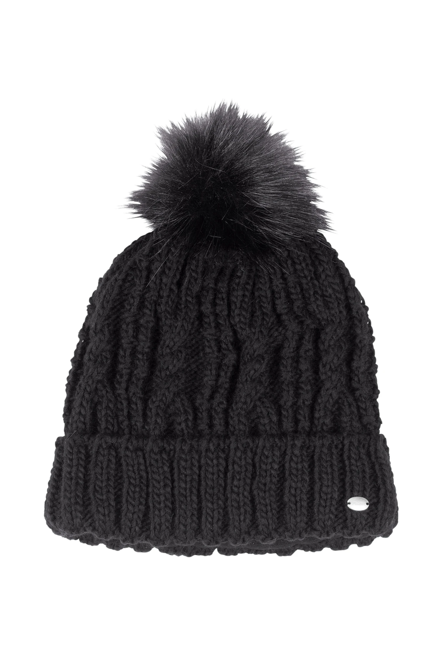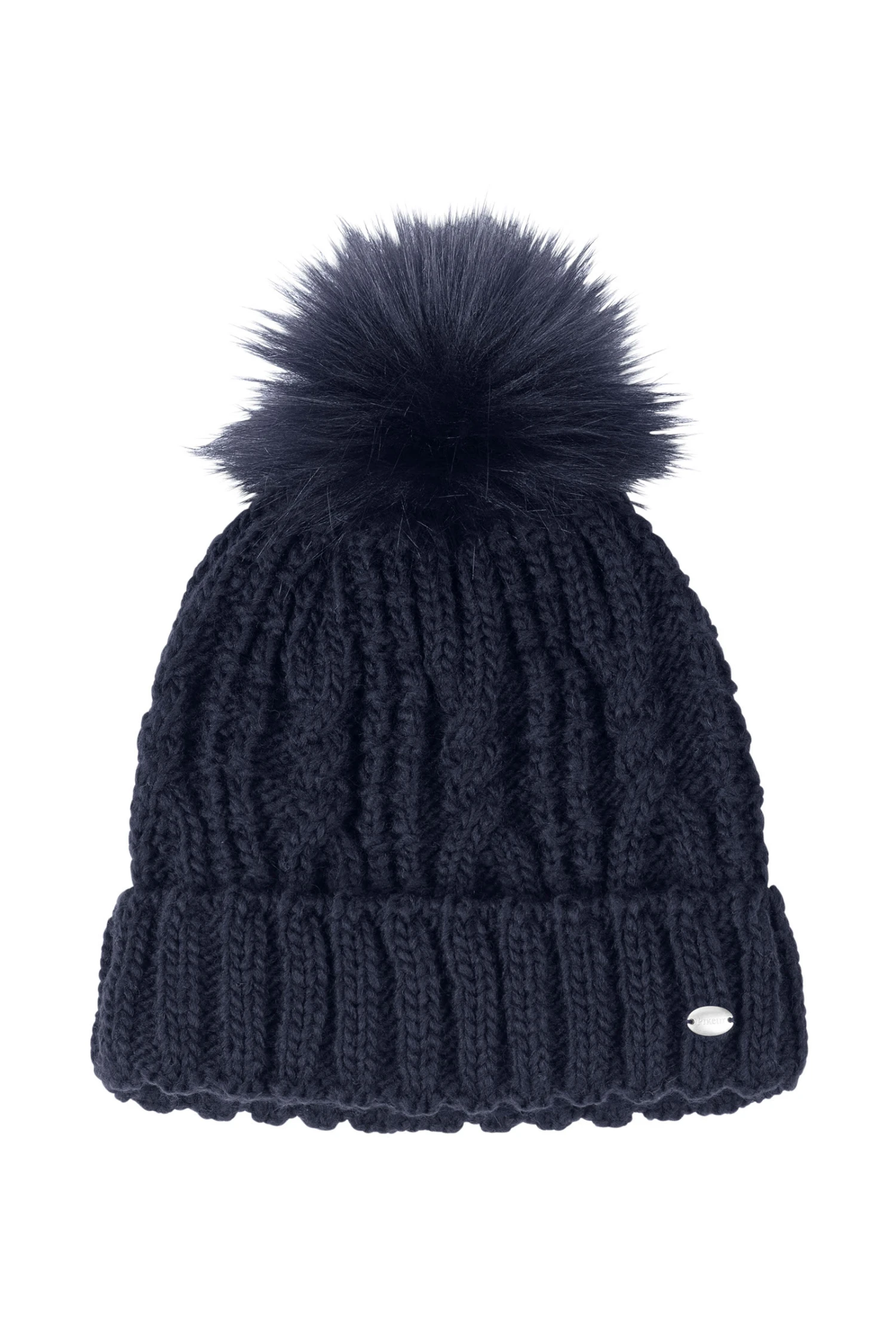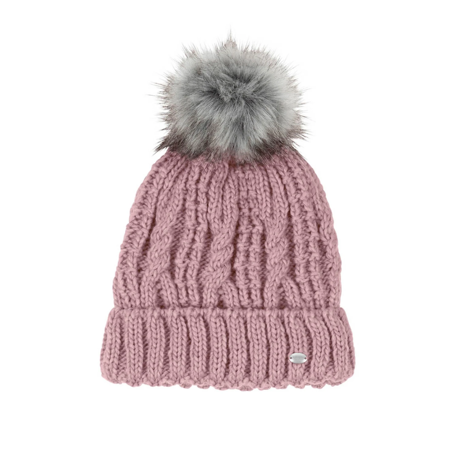 Klassische Strickmütze mit Bommel aus Fellimitat.